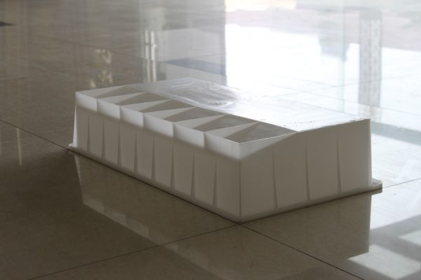 一款類似梯形結(jié)構(gòu)的公路側(cè)石模具,采用具備高度韌性的聚丙烯塑料為原料,經(jīng)大型專業(yè)注塑設(shè)備加工完成。結(jié)構(gòu)上同樣采用其他類似路側(cè)石模具的設(shè)計方案,在塑料模具底部及四周布滿加強筋,合理的提升此公路側(cè)石模具的耐用性。
