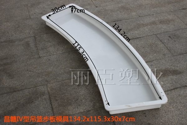 水泥吊籃步板塑料模具主要用于預(yù)制高鐵橋墩吊籃上的檢查步板,此款模具系列為昌贛高鐵線路專用,共分為I、II、III、IV四個型號,由直行吊籃步板塑料模具及彎道圓弧吊籃步板塑料模具組成,其中I型為直行樣式,II、III、IV為圓弧樣式。