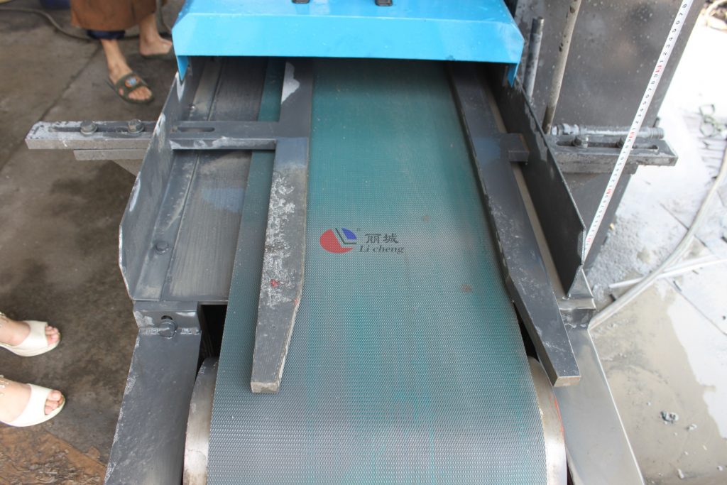 制作這臺多功能成型機的技術(shù)員在對這臺機器出廠前進行了最后一步的調(diào)試,將澆筑成型的水泥磚放置輸送帶上,成型機入口處與出口處都有配置供水系統(tǒng),防止在制作過程中塵土飛揚,能對水泥制品打磨過程中其表面更為整潔統(tǒng)一。經(jīng)過平磨系統(tǒng)對水泥模具澆筑成型的水泥制品進行磨形,后進入第二系統(tǒng)對水泥磚塊制品就進行拉條紋,這款多功能側(cè)石二工位條紋成型機打磨成型的條紋彩磚的外觀以34條紋為主。打磨成型后在有輸送帶將水泥磚運輸出來。其使用過程中為防止施工過程中的安全事故的發(fā)生,通過使用電控箱的方式來對機器進行急停控制。