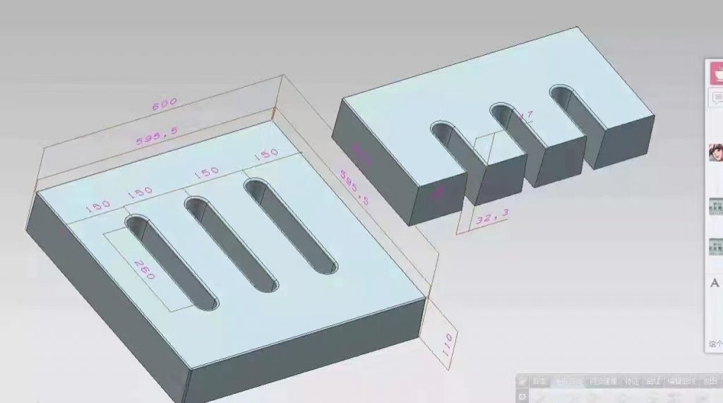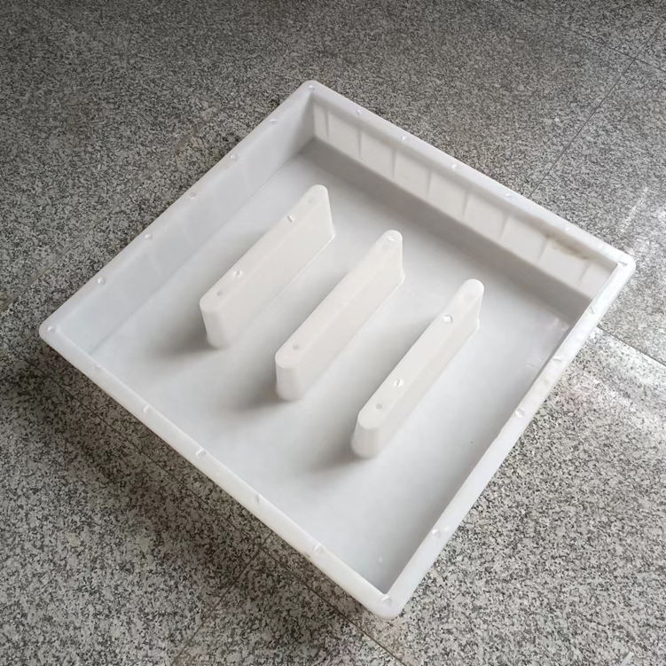 三孔雨水蓖塑料模具,模具采用米白色PP材質(zhì)制成,模具尺寸為60cm*60cm*11cm,模具開(kāi)始設(shè)計(jì)尺寸為60cm*60cm*10cn,因?yàn)樾枰浞诌_(dá)標(biāo),所以模具厚度尺寸實(shí)際尺寸比設(shè)計(jì)尺寸厚1cm,模具采用三孔設(shè)計(jì),具體尺寸如下設(shè)計(jì)圖。主要用于道路下水使用,且厚度厚,可以承載較大的壓力。
