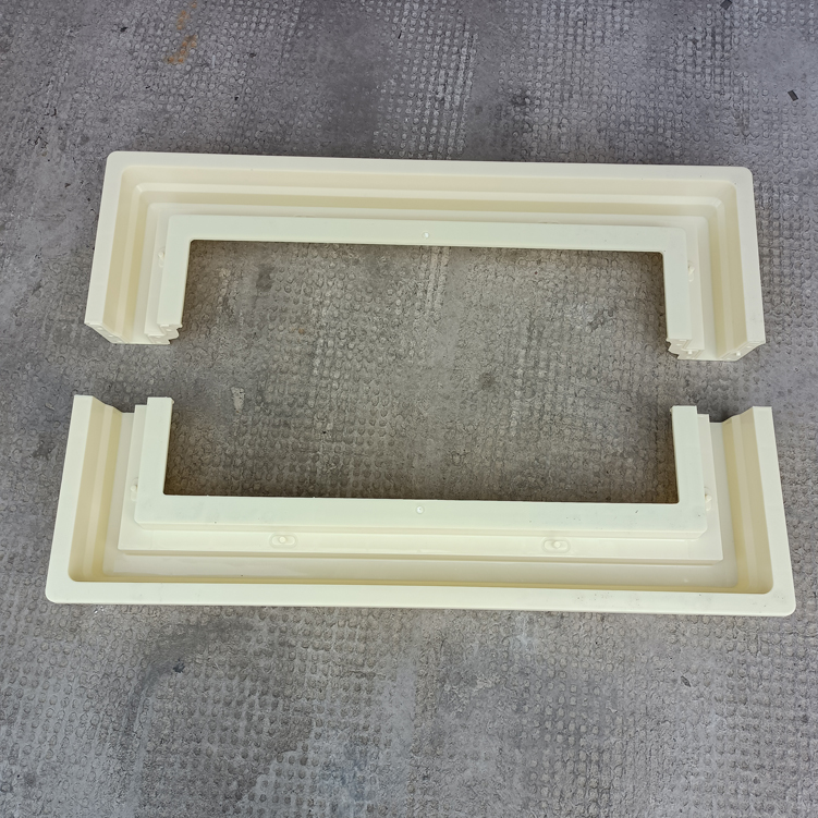 方井座塑料模具,模具采用拼接方式、為兩個(gè)組裝而成、寬度可以增加調(diào)節(jié),有設(shè)配件井座B,該長(zhǎng)度、寬度尺寸為模具尺寸最外邊、包括翻邊。