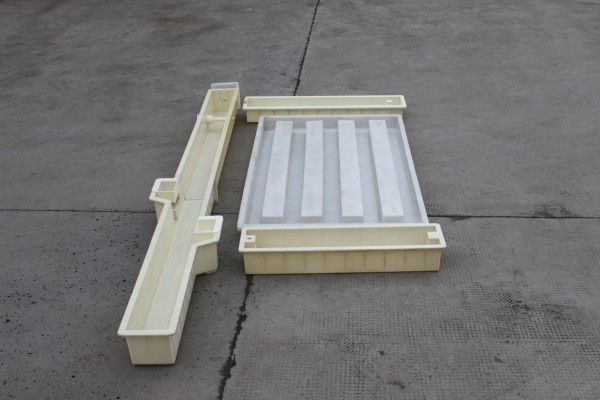 欄片模具則采用PP聚丙烯材質(zhì),更好的模具韌性對施工面積較大的水泥制品更為有利。水泥護欄欄片模具的尺寸為149.5×96.5x9cm,采用5幅式欄桿設(shè)計。