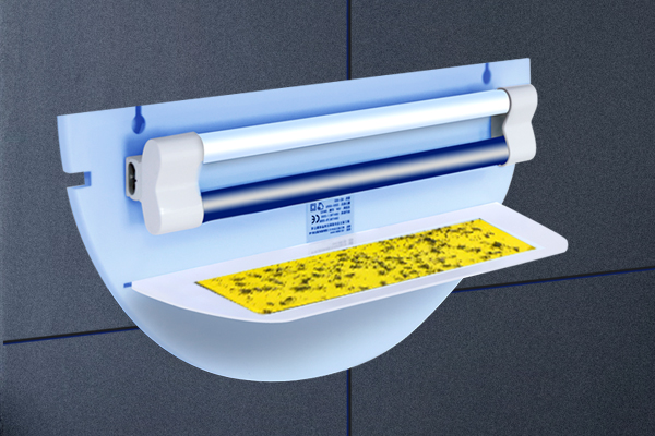 優(yōu)勢:雙面開口,誘蠅角度大;可以懸掛安裝;后期沒有額外耗材。